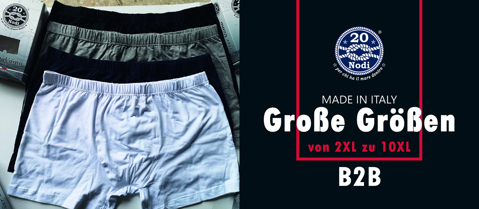 Wir sind spezialisiert auf Plus-Size-Unterwäsche und Sportbekleidung in großen Größen von 2XL bis 10XL. Aus diesem Grund bieten wir Einzelhändlern und Distributoren eine sorgfältig ausgewählte Kollektion an, die mit der italienischen Handwerkskunst entworfen und hergestellt wird. Jedes Stück unserer Kollektion ist eine Hommage an höchste Qualität und tadellosen Stil, entworfen, um jede Körperform zu betonen und außergewöhnlichen Komfort zu gewährleisten.